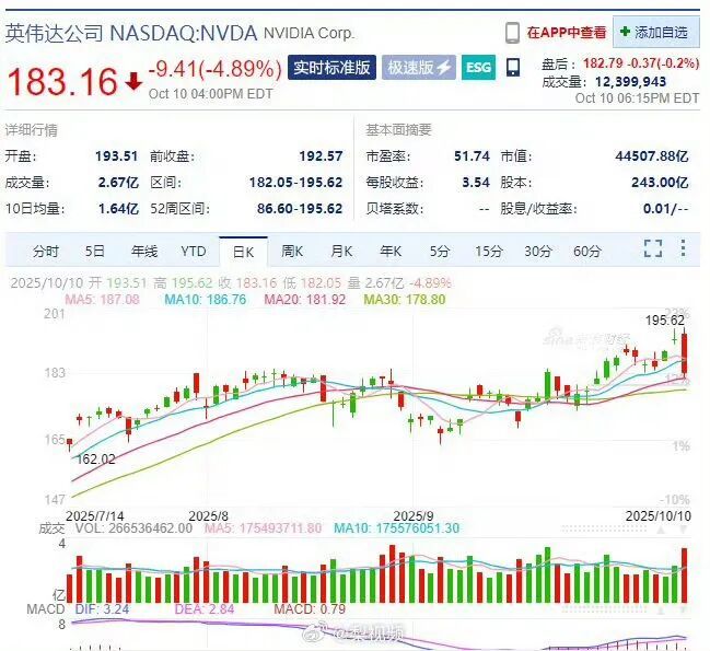 大型科技股普跌。博通跌近6%;特斯拉跌超5%;亞馬遜跌近5%;蘋果、Meta跌超3%;微軟、谷歌跌超2%。英偉達(dá)報(bào)183.16美元,跌4.89%,其市值一夜蒸發(fā)2287億美元(16318億元)。