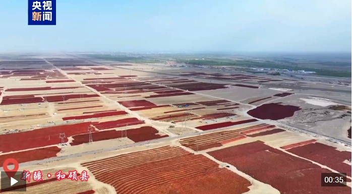 眼下,新疆巴州和碩縣的色素辣椒進(jìn)入集中晾曬加工期。在廣袤的戈壁灘上,一塊塊、一壟壟的紅辣椒連成一片進(jìn)行晾曬,猶如一片片“紅色地毯”。當(dāng)?shù)胤N植戶正忙著將晾曬好的辣椒進(jìn)行打包、裝車,運(yùn)送到加工廠進(jìn)行加工。和碩縣光照時(shí)間長(zhǎng),晝夜溫差大,獨(dú)特的光熱水土資源孕育出高品質(zhì)辣椒。