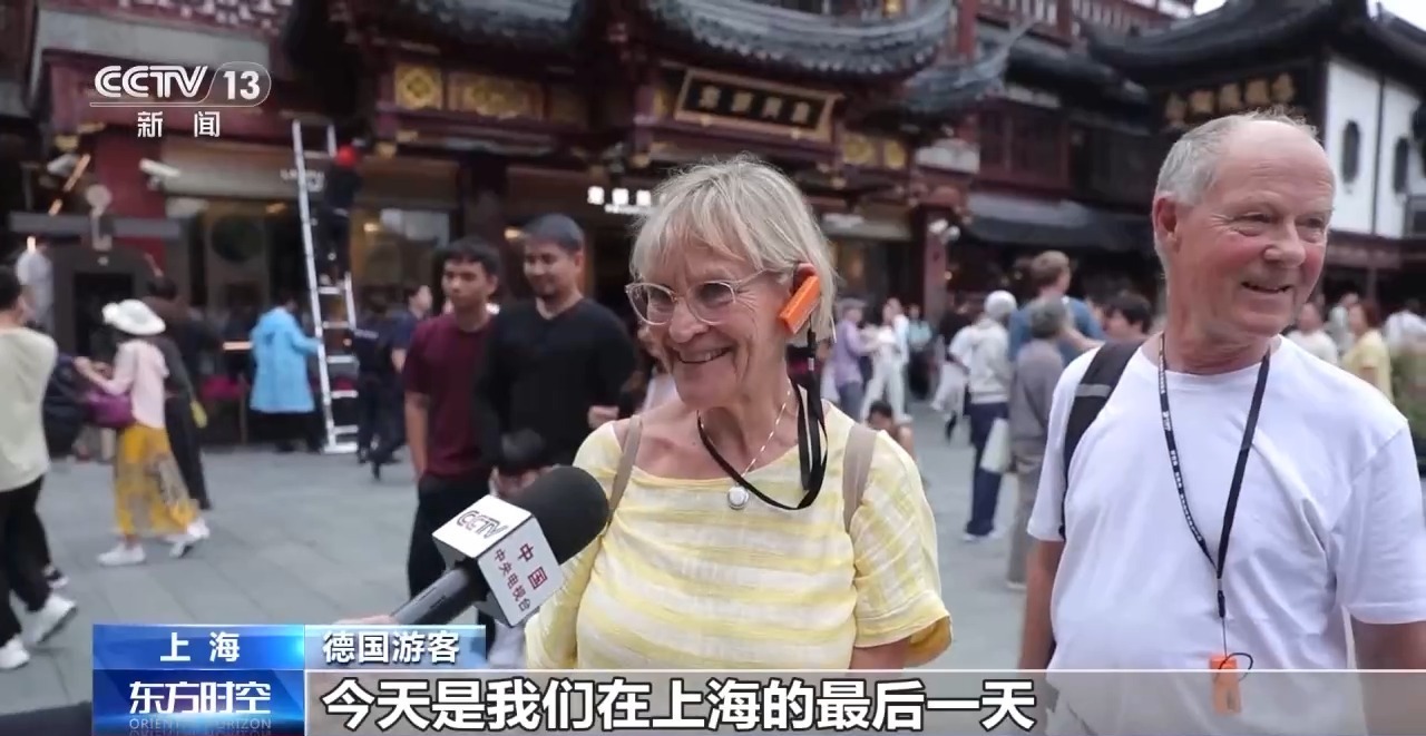 德國游客:今天是我們?cè)谏虾5淖詈笠惶欤浅S幸馑肌_@里的食物很符合我們的口味,我非常開心。