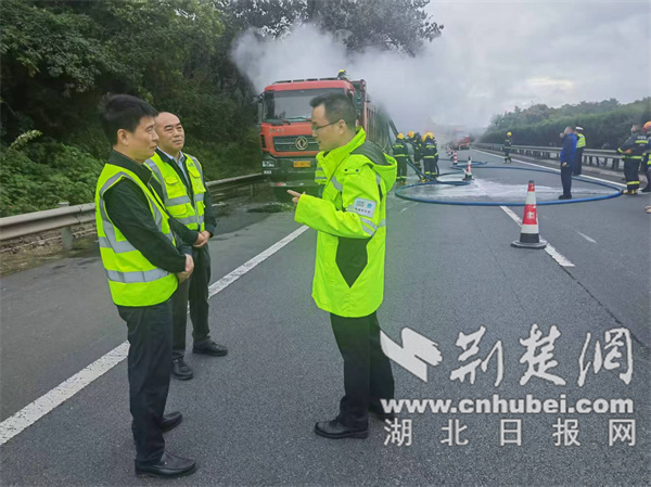 “高警同志,馬上封閉行車道和應急車道,只留一條超車道供救援車輛通行!”巡檢人員一邊觀察火勢,與高警配合管制,一邊對趕來的養護人員強調,“先在起火點后方100米設置警戒區,用反光錐桶和警示牌隔開車流,防止二次事故!”