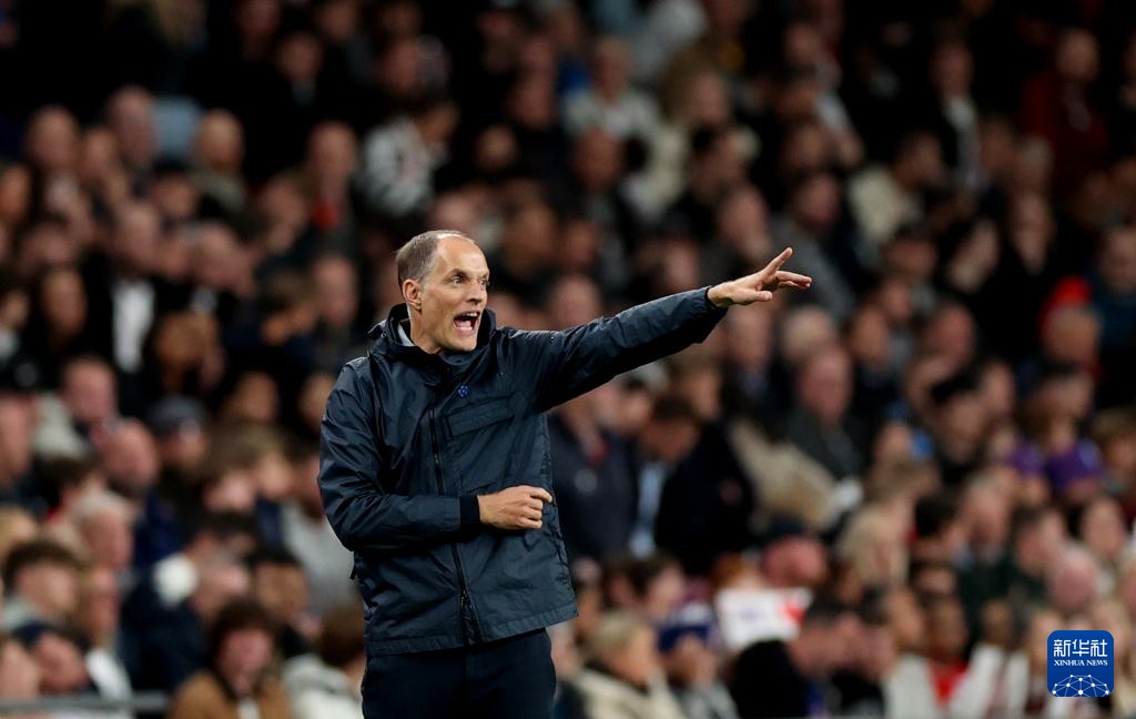 10月9日,英格蘭隊主教練圖赫爾在場邊指揮。