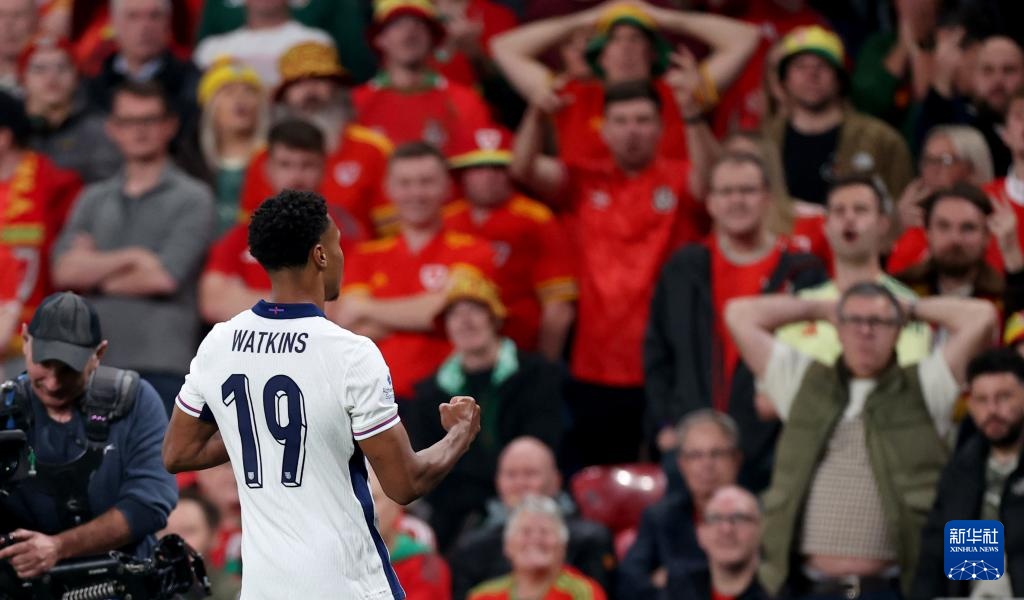 10月9日,英格蘭隊球員沃特金斯慶祝進球。