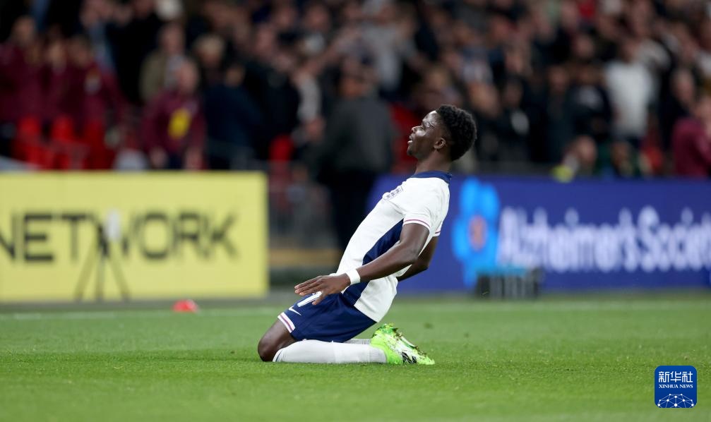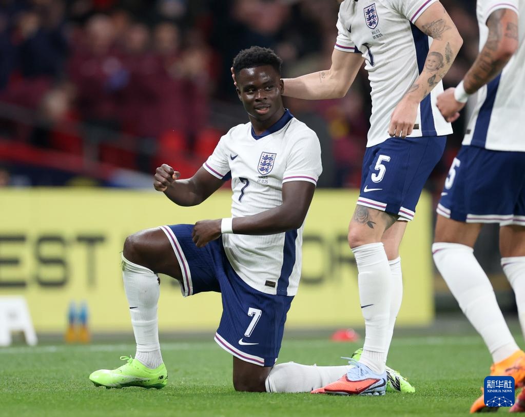 10月9日,英格蘭隊球員薩卡慶祝進球。