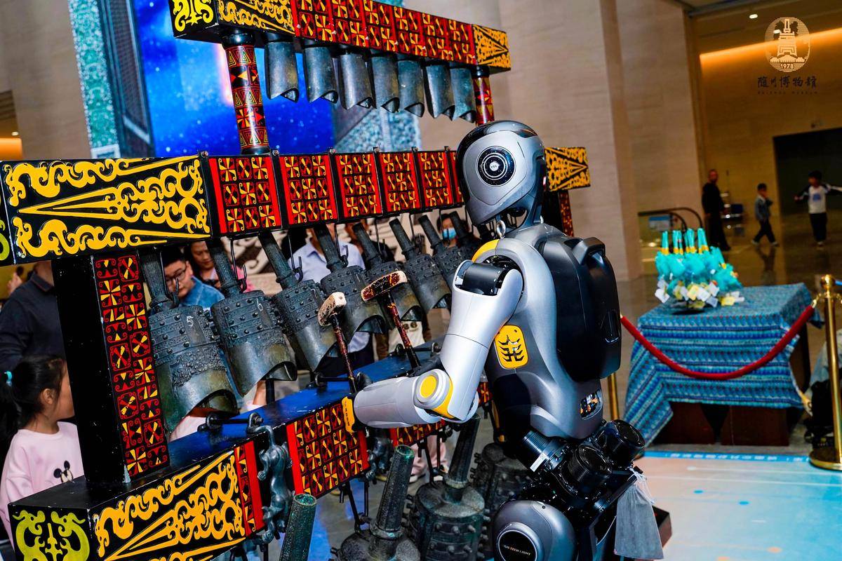 在隨州博物館,曾侯乙編鐘與人形機器人跨界合奏。(湖北日報全媒記者 易雯 攝)