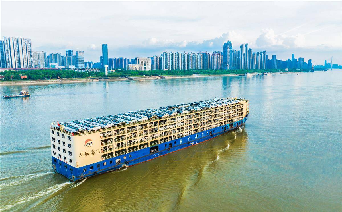 滿載汽車的貨輪行駛在長江武漢段。(湖北日報全媒記者 薛婷 攝)
