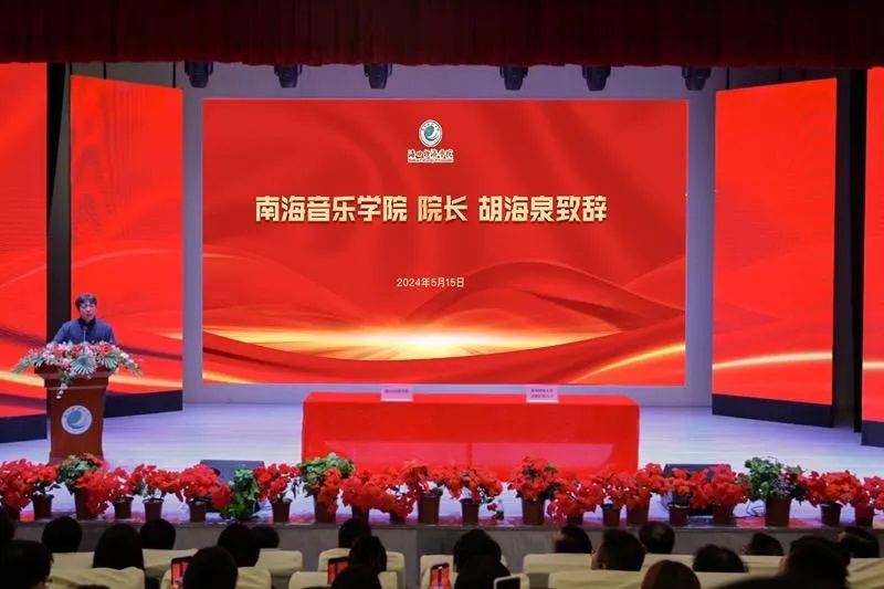 在簽約儀式上,胡海泉作為院長致辭,表示校企合作新的辦學模式來自于校企合作雙方共同的價值觀和理想,未來合作中,要多干實事,多干有效的事,多干對南海音樂學院的品牌的發展,長足進步有貢獻的事情,學習國內外知名藝術院校成功經驗與典型做法,與優秀的伙伴一道,把南海音樂學院打造成家長信賴、學子向往,業界知名、全國有影響的學院。