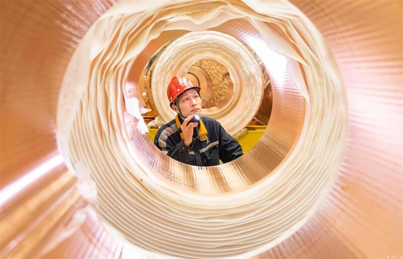 華中銅業員工正在仔細檢查銅板帶產品質量