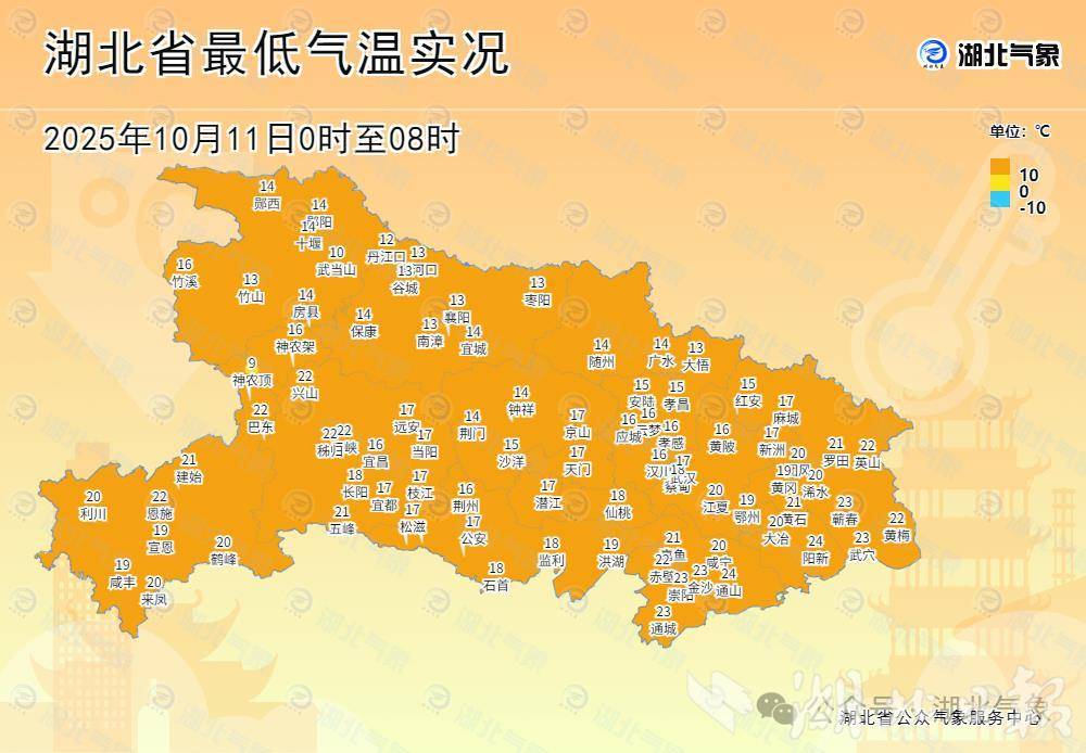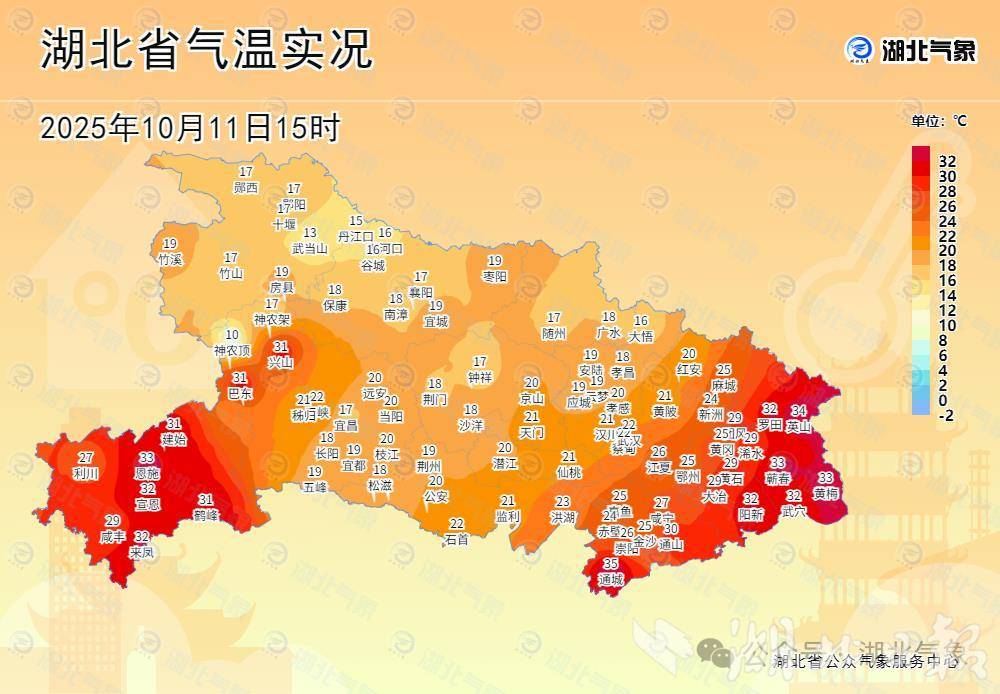 11日清晨,鄂西南及東部地區(qū)最低氣溫20至24℃,而武漢、荊門等多地最低氣溫跌破20℃,創(chuàng)下今年入秋以來的氣溫新低。午后陰云遮擋進(jìn)一步抑制升溫,15時十堰、襄陽、隨州、荊門、孝感等地氣溫不足20℃,監(jiān)利更是較10日同一時段驟降近14℃,僅21.3℃。與之形成鮮明對比的是,冷空氣影響較弱的黃岡、咸寧南部等地仍被“秋老虎”盤踞,通城以35℃高溫刷新自5日以來的連續(xù)7天高溫紀(jì)錄。