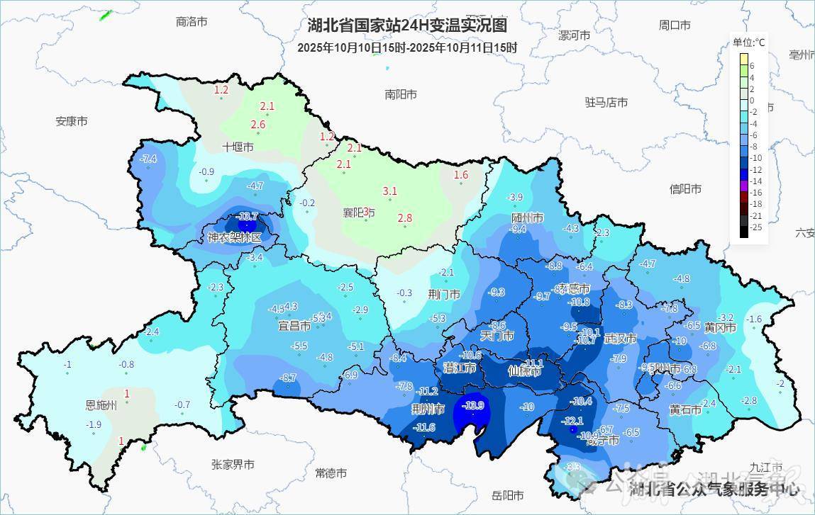 湖北日報訊(記者曾莉)10月11日,冷空氣滲透南下引發(fā)湖北氣溫劇烈波動,省內(nèi)氣溫呈現(xiàn)“西涼南熱”的極端反差,襄陽和通城出現(xiàn)15℃溫差。預(yù)計13日起,新一輪強(qiáng)降雨與冷空氣將共同發(fā)力,全省氣溫將再降4至10℃,“秋老虎”徹底退場。