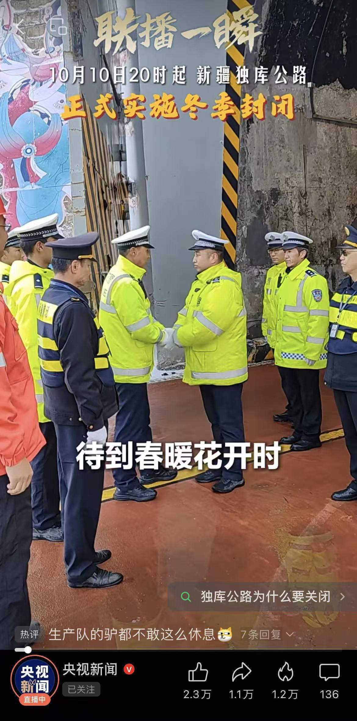 10月10日20時起,新疆獨庫公路正式實施冬季封閉。