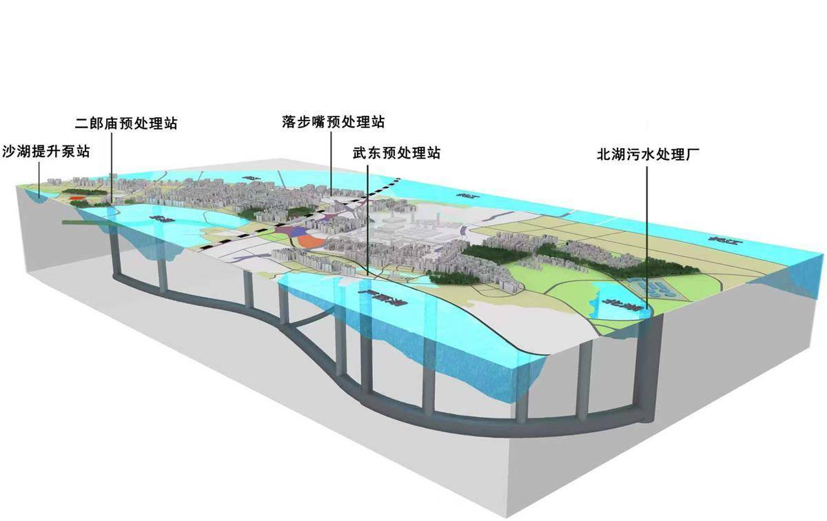 大東湖深隧是國內首條投運的城市深層污水傳輸隧道,于2020年9月投入運行,主隧起于二郎廟預處理站,沿沙湖大道、歡樂大道至三環線,轉至武鄂高速,再經嚴西湖、北湖公園至北湖污水處理廠。該項目收集武昌區、洪山區、青山區及東湖風景區部分污水,先進行預處理,再輸送到北湖污水處理廠,惠及大武昌片區130平方公里內約300萬居民。