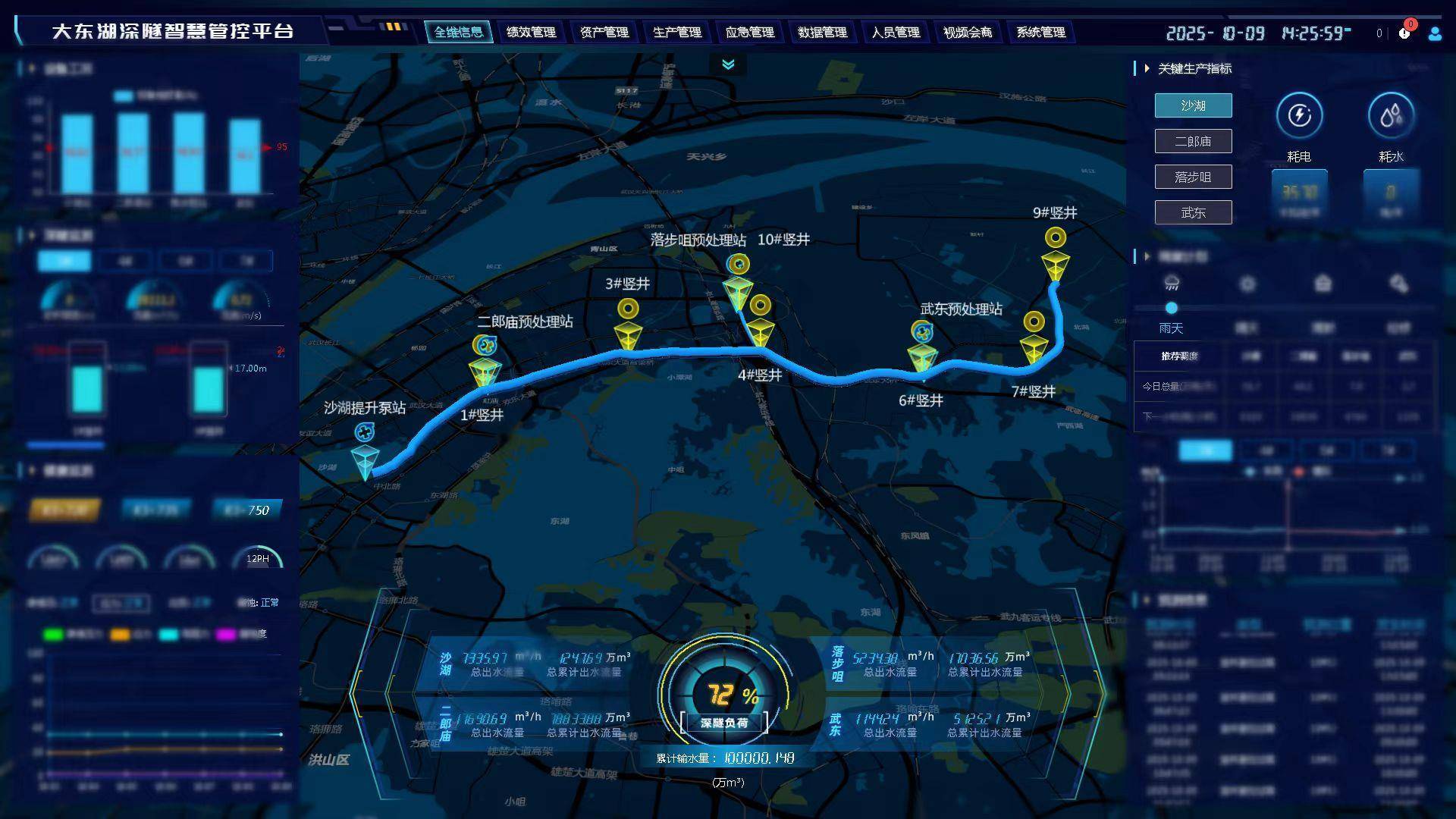 “一方面,隨著城市發展,項目服務片區的污水預處理量持續增長;另一方面,我們持續提升運營品質,確保項目穩定、高效運行。”在二郎廟預處理站指揮中心,藍色大屏上數據閃動,項目負責人王建華介紹,這是大東湖深隧的“智慧大腦”,集成了實時監測、預測預警、智慧調度等功能,“5年來,運營團隊持續收集、分析海量運行數據,不斷迭代平臺模型算法,使其風險預測預警更精準,生成的調度策略預案更貼合實際,保障深隧有效應對來水高峰。”