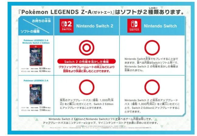 Switch 主機也可以游玩 Switch 2 版本游戲。Switch 版本可以購買 1000 日元的升級包升級到 Switch 2 版本(適合暫時不想購買新主機玩家)。