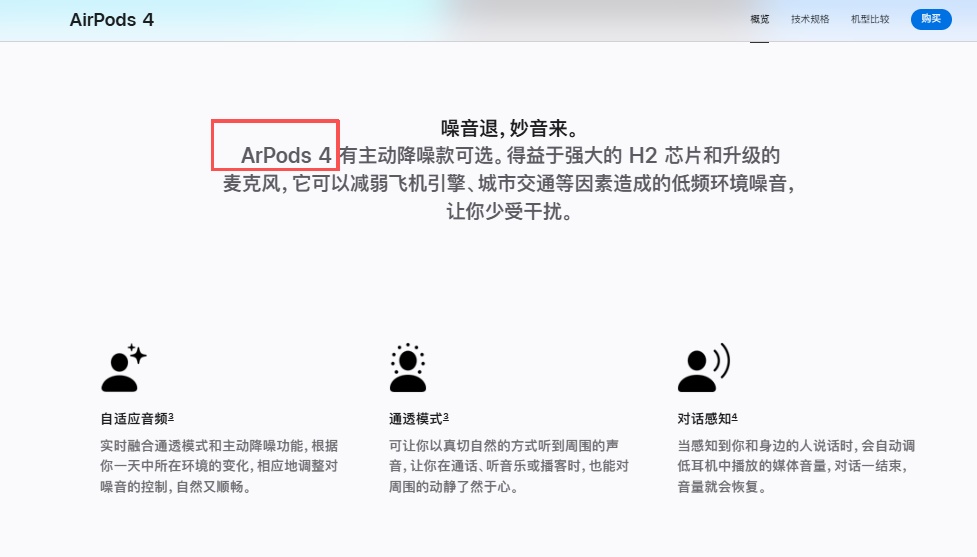 10月11日,記者查詢發現,在蘋果中國官網的AirPods 4耳機介紹頁面出現了“錯別字”,在介紹該款耳機主動降噪能力的文案中,原本的“AirPods 4”被拼寫成“ArPods 4”。截至發稿,該錯誤依然沒有被改正。