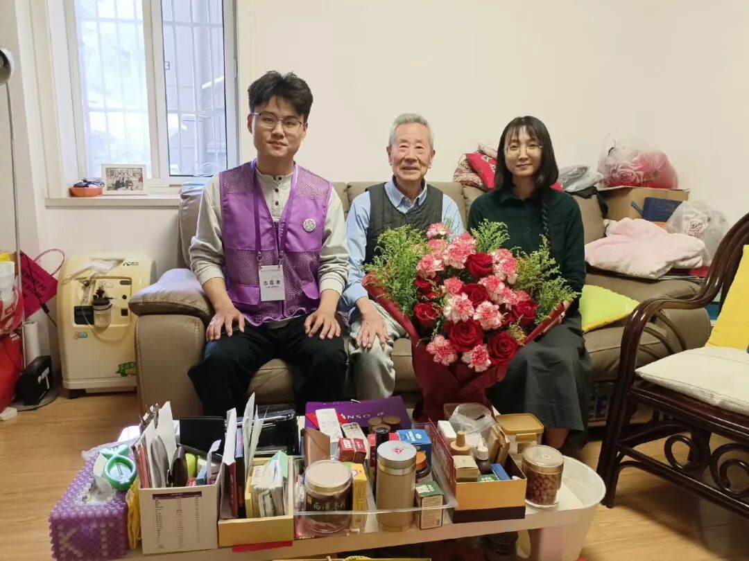 今年5月11日,是唐復(fù)龍90周歲生日。5月9日下午,紀(jì)念館和協(xié)會工作人員,以及紫金草志愿者,提前登門為唐爺爺慶生,送上慰問品和慰問金。