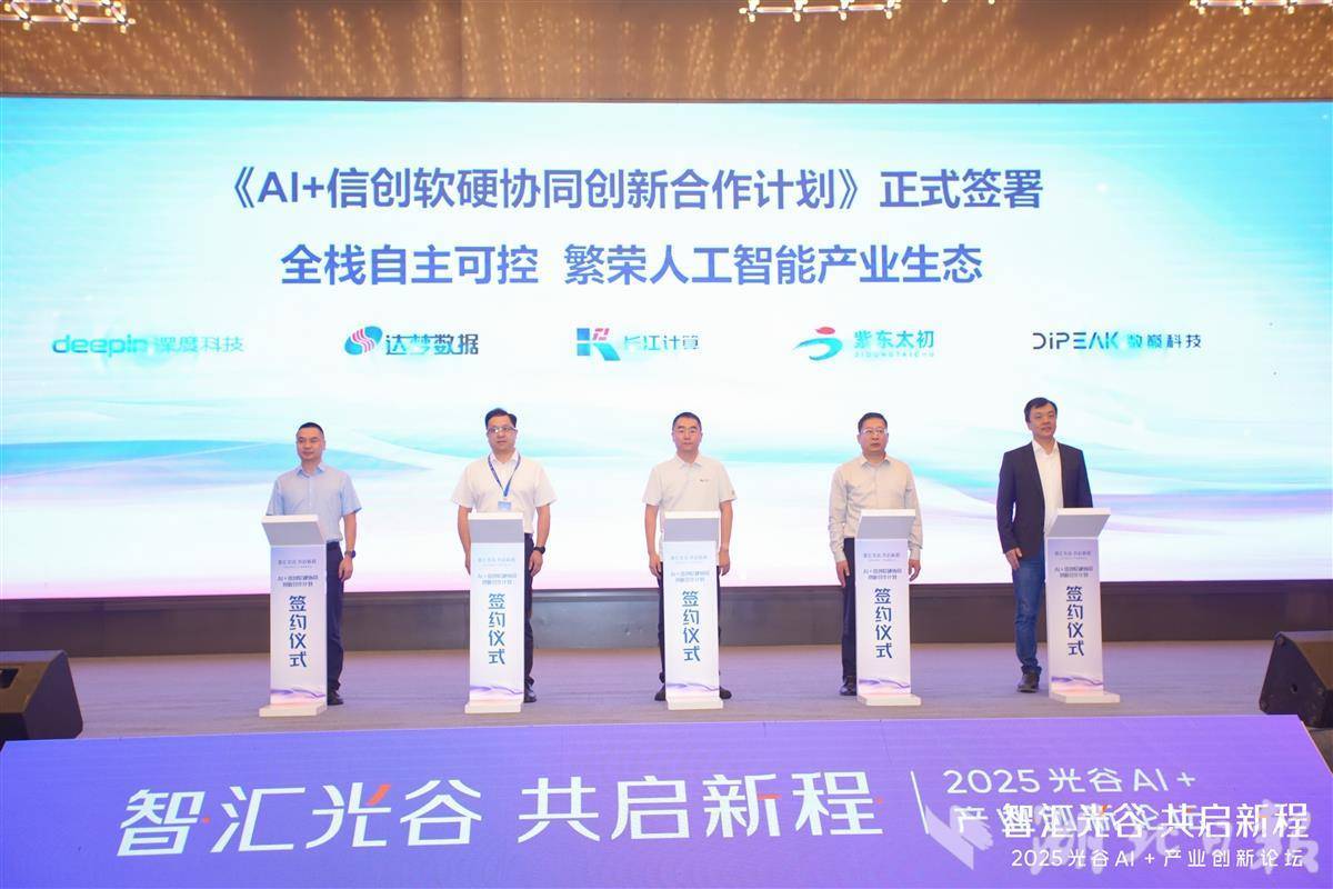 根據會上簽署的《AI+信創軟硬協同創新合作計劃》,長江計算、紫東太初、達夢數據、深度科技、數巔科技等企業將共同構建國產自主可控的人工智能產業一體化生態,為光谷乃至全國AI+信創產業注入新動能。