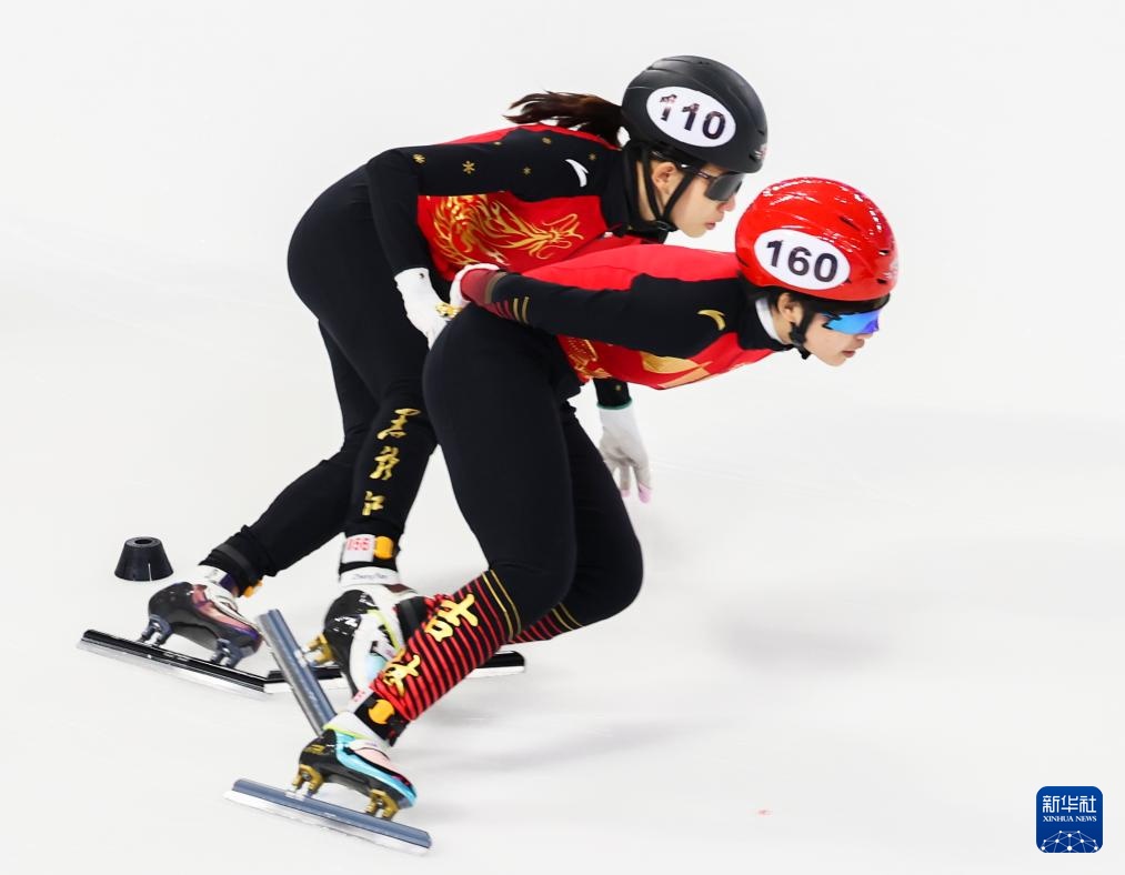 10月11日,黑龍江省冰上訓(xùn)練中心選手張延(左)在甲組女子1000米決賽中。最終,她獲得冠軍。