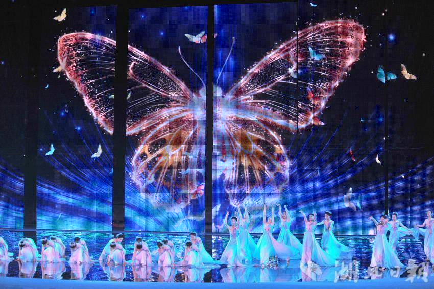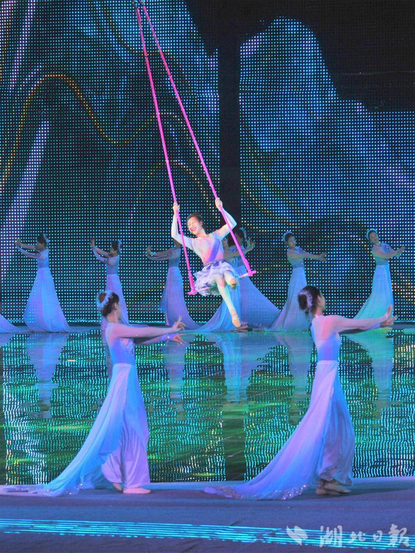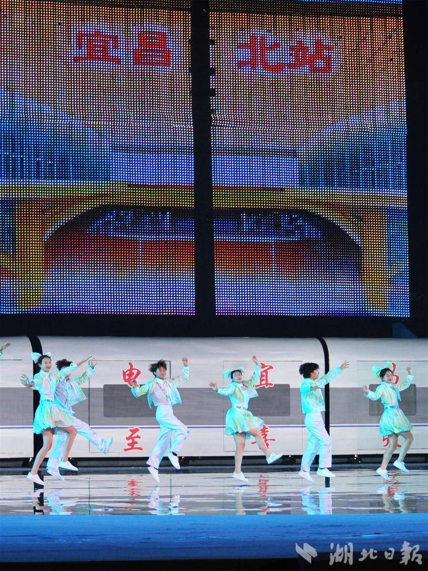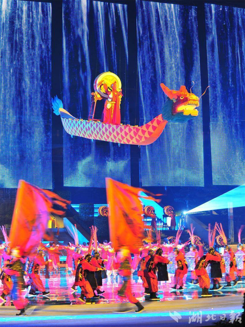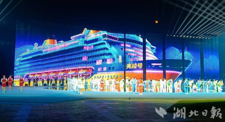 宜昌七運會開幕式文藝節目展演以“水”為主線,《巴山楚水 千年回響》《峽江競秀 擊水逐浪》和《大道通途 華光綻放》三個篇章交相輝映,沉浸式文藝展演吸引市民在輕松愉悅的氛圍中共同觀賞文體盛宴。