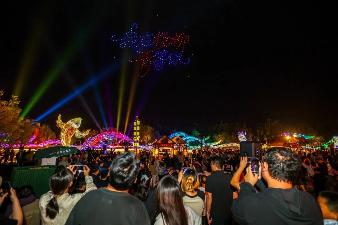 華燈初上,月夜未央。古鎮(zhèn)內(nèi)的“趕大營”實景演出剛剛落下帷幕,余韻未消,不遠處運河邊白石橋水幕開啟,沿河兩岸十數(shù)組年畫燈組流光溢彩,一艘游船畫舫順流而下,將“北國江南,沽上揚州”的漕運繁盛演繹得淋漓盡致。此刻的天空中,一場精彩絕倫的孔明燈+無人機秀正悄然上演。