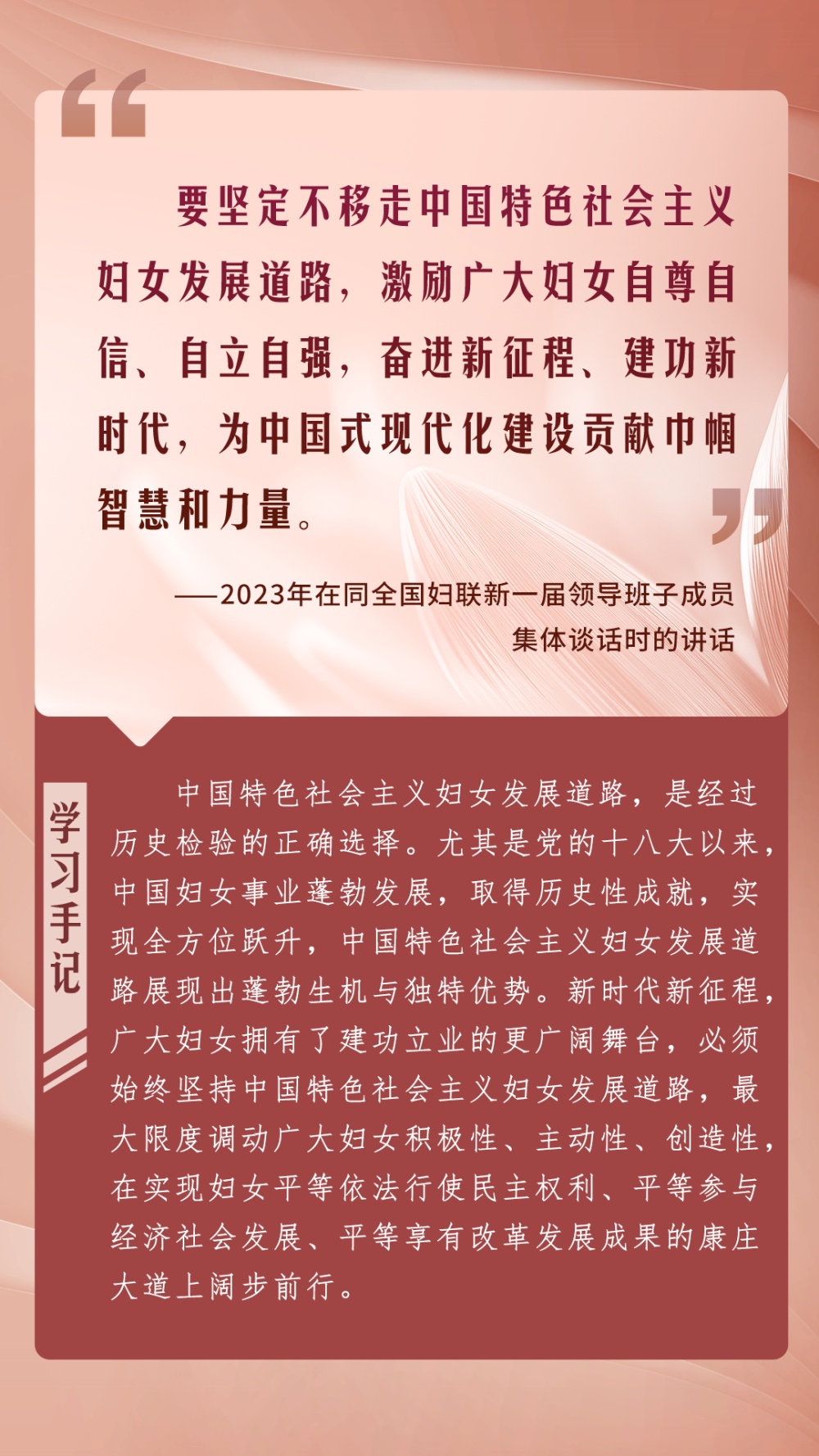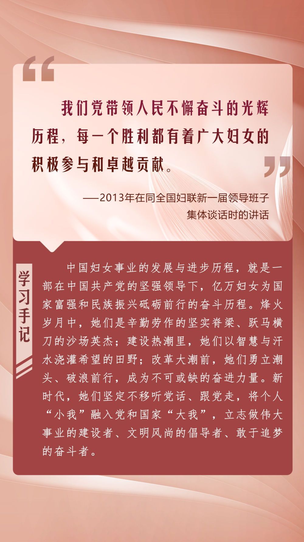 黨的十八大以來,習近平總書記關心關懷婦女全面發展、謀劃部署推進婦女工作,激勵億萬婦女在實現中華民族偉大復興的新征程上昂首向前、奮斗逐夢,也為加快實現性別平等、促進全球婦女事業發展指引方向。