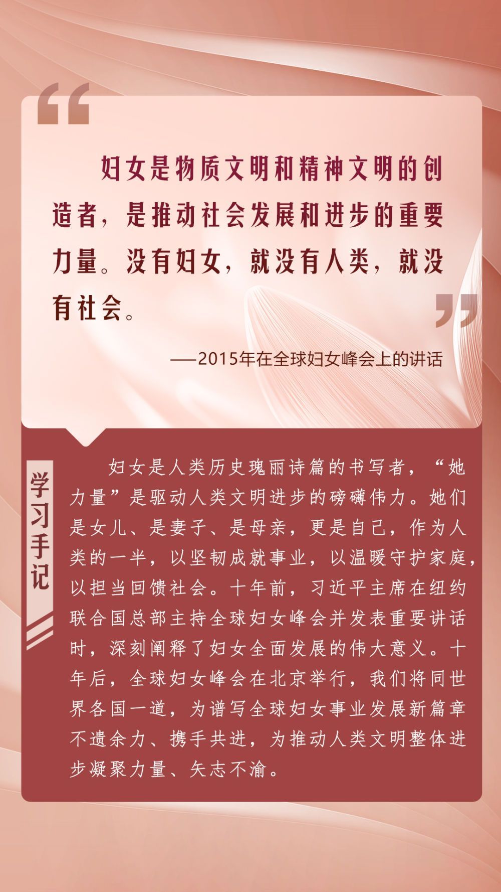在全球婦女峰會即將舉行之際,我們重溫習近平總書記的重要論述,共同展望婦女發展的美好未來,期待全球婦女事業發展譜寫新的絢爛篇章。