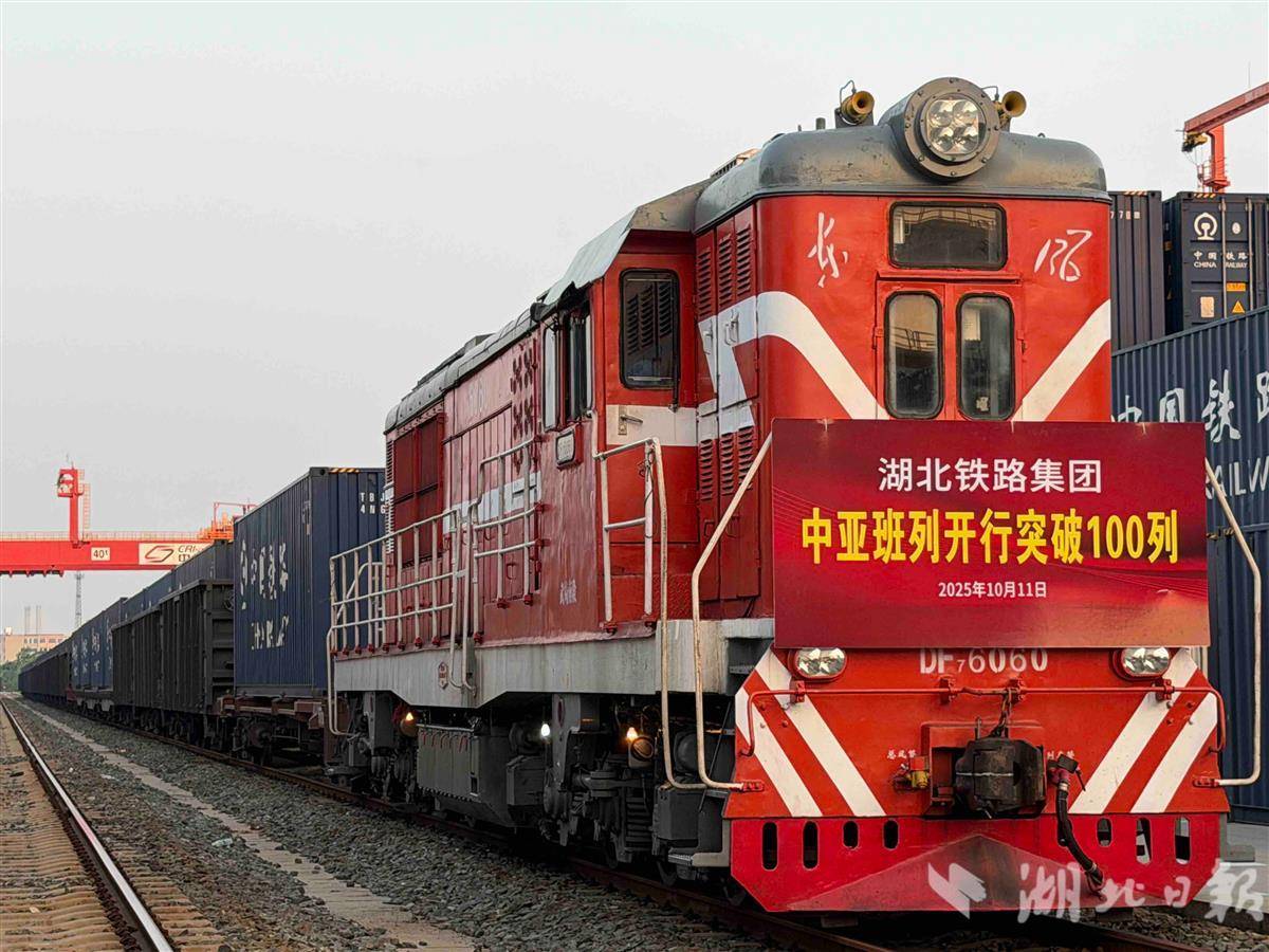 湖北日報訊(記者李先宏、嚴(yán)芳婷、通訊員蘆忠章)10月11日,一聲長笛,一列滿載光伏組件、機械配件、化工材料的中亞班列,緩緩駛出武漢中鐵聯(lián)集吳家山中心站,向著烏茲別克斯坦奔馳而去。這是中亞班列(武漢)運營以來開行的第100列班列。至此,這條橫貫亞歐大陸的“鋼鐵駝隊”累計運送貨物超7萬噸,貨值12.5億元,覆蓋中亞五國及“一帶一路”沿線8個國家25個城市。