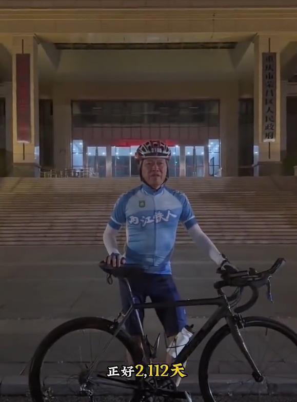 視頻中,60歲的高洪波穿著運(yùn)動(dòng)服裝、戴著頭盔,扶著自行車站在榮昌區(qū)政府大樓外說:“我從2019年12月30號(hào)到榮昌,今天是2025年10月12號(hào),正好2112天。今天以這種獨(dú)特的方式——騎自行車離開榮昌,開啟我新的生活。從今天開始,每天鍛煉一次,要么游泳,要么騎車,要么跑步,我爭(zhēng)取連續(xù)堅(jiān)持幾十年。適當(dāng)時(shí)候,我也可以騎自行車再回到榮昌。永遠(yuǎn)祝福榮昌,祝榮昌的明天更加美好!”