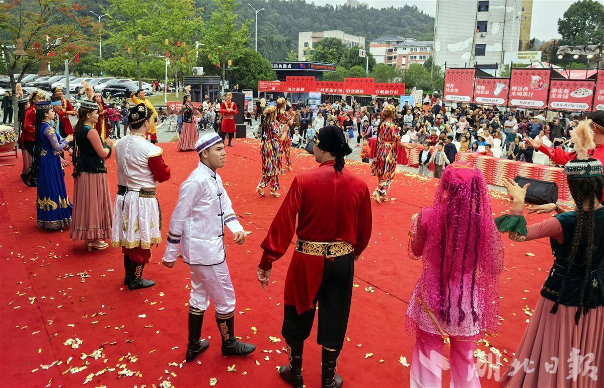 此次小巴扎開幕,以 “歌舞 + 市集” 的形式讓宜昌市民近距離感受新疆魅力,為深化兩地民族團結與文旅融合注入新活力。(湖北日報全媒記者 劉曙松 攝)
