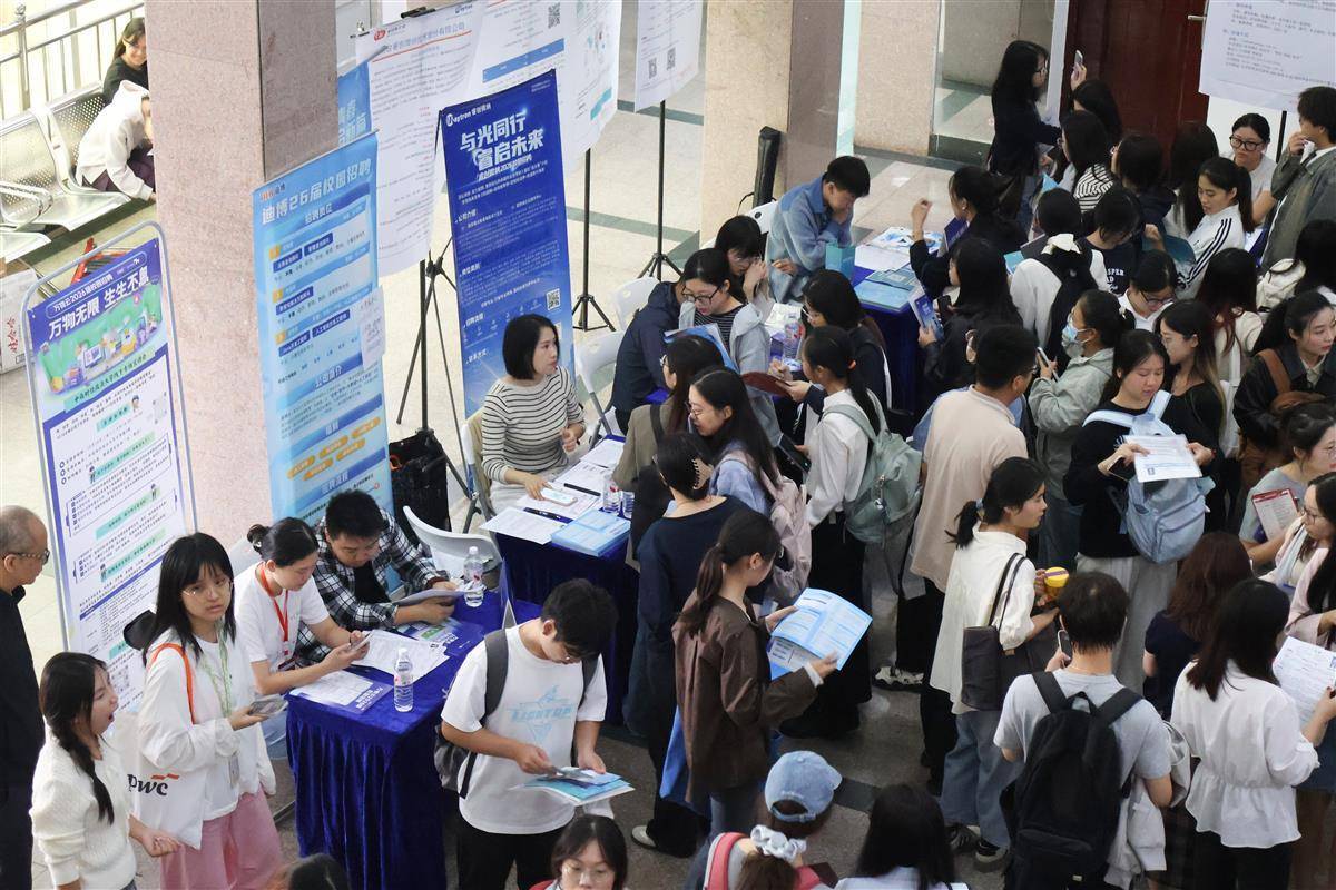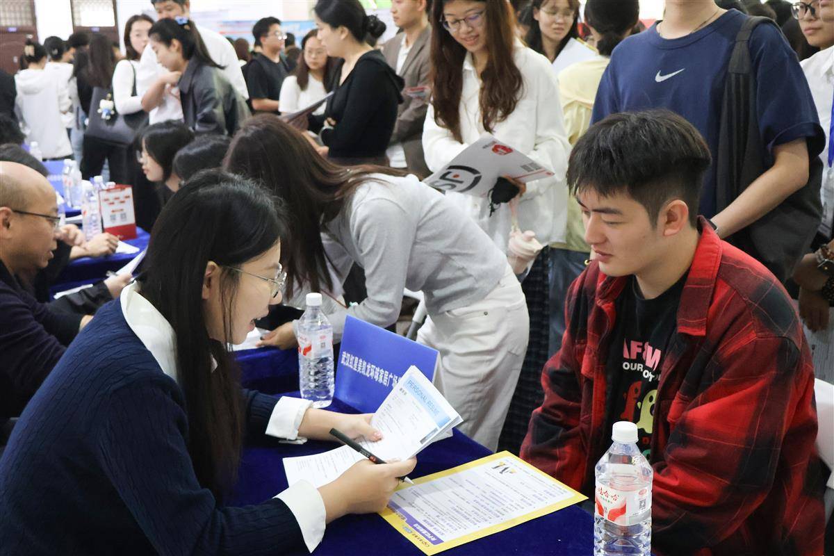 2025年10月12日,中研博碩英才網與中南財經政法大學舉辦“2025年秋季武漢地區高校畢業研究生/本科生雙選會在中南財經政法大學火熱舉行,吸引大批畢業生前來參加。本次雙選會涵蓋理工類、經管類、醫學類、文史類、農林類、藝術學類、法學類等多個專業,現場有不少高等院校、科研院所、大型國央企等單位前來求賢納才。據了解,進入秋季新學期以來,中南財經政法大學還將陸續舉辦多場招聘會,千方百計促進高校畢業生高質量就業。(湖北日報全媒記者 何宇欣 通訊員 卓張鵬 實習生 曹若妍 陶晨曦 攝)
