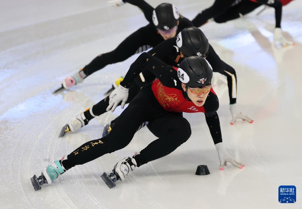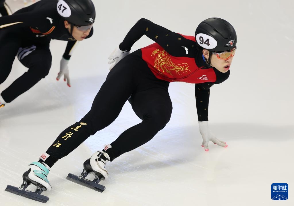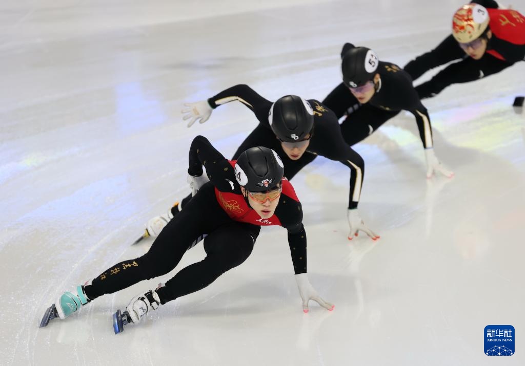 10月12日,黑龍江省冰上訓練中心選手王天佑(右一)在甲組男子1000米決賽中。最終,他奪得冠軍。
