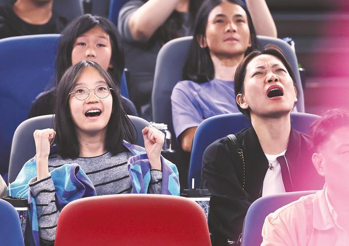 看到喜愛的球員失分,看臺上的球迷一臉沮喪。