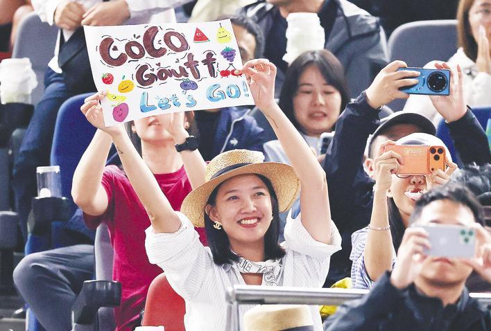 10月12日晚,武漢光谷國際網球中心,高芙以一場干脆利落的勝利擊敗佩古拉,加冕武網桂冠。奪冠時刻,她高舉球拍,大聲歡呼,眼中閃爍著勝利的光芒,與全場沸騰的球迷熱烈互動。