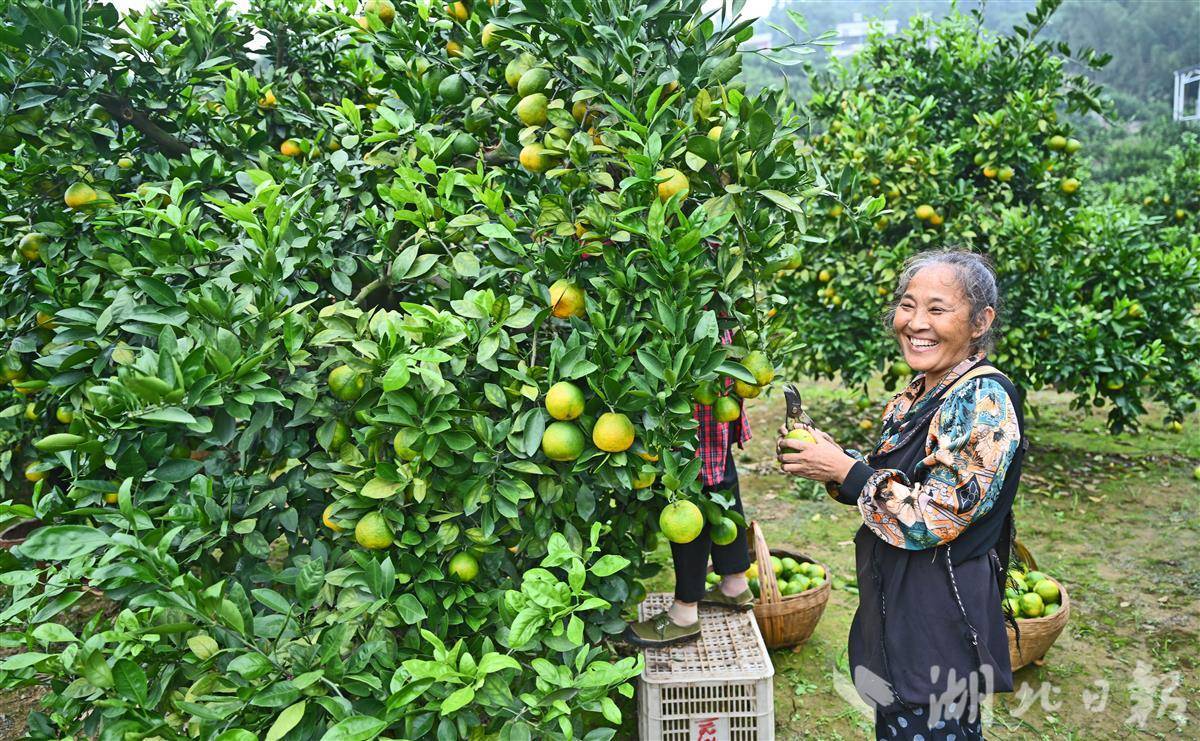 10月10日,宜都市高壩洲鎮(zhèn)白鴨垴村的清江橙示范基地里,連綿的橘樹生機(jī)盎然,黃綠相間的果實(shí)壓彎枝頭。果農(nóng)們正忙碌地進(jìn)行采摘,田間地頭處處洋溢著豐收的喜悅。