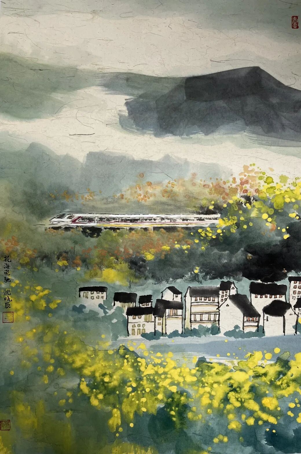 它不像飛機那樣匆匆掠過云端,而是貼著大地前行,仿佛特意為我展開一幅山水長卷。坐在微微搖晃的車廂里,鼻尖縈繞著淡淡的陽光曬過的棉布氣息,耳邊是鋼軌與車輪的私語,窗外的景色便成了會流動的電影——春的繁花、夏的綠蔭、秋的斑斕、冬的銀裝,都在這趟悠然的旅程中,向我訴說著祖國山河的萬種風情。