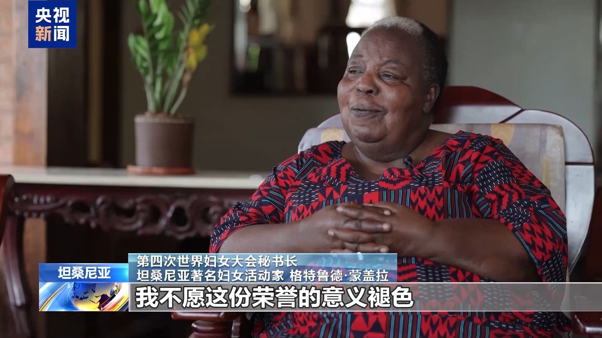 第四次世界婦女大會(huì)秘書長、坦桑尼亞著名婦女活動(dòng)家 格特魯?shù)隆っ缮w拉:這個(gè)稱呼對(duì)我而言是一種莫大的榮幸,我不愿這份榮譽(yù)的意義褪色。我認(rèn)為習(xí)主席尊重女性地位,注重保障女性權(quán)益,所以我很欽佩他。