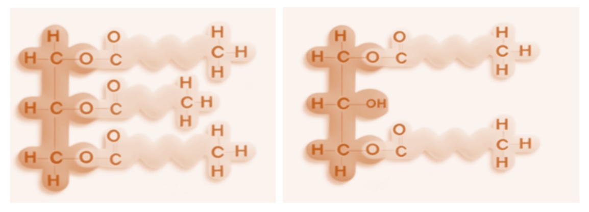 左圖為甘油三酯結構,右圖為甘油二酯結構。 受訪者供圖