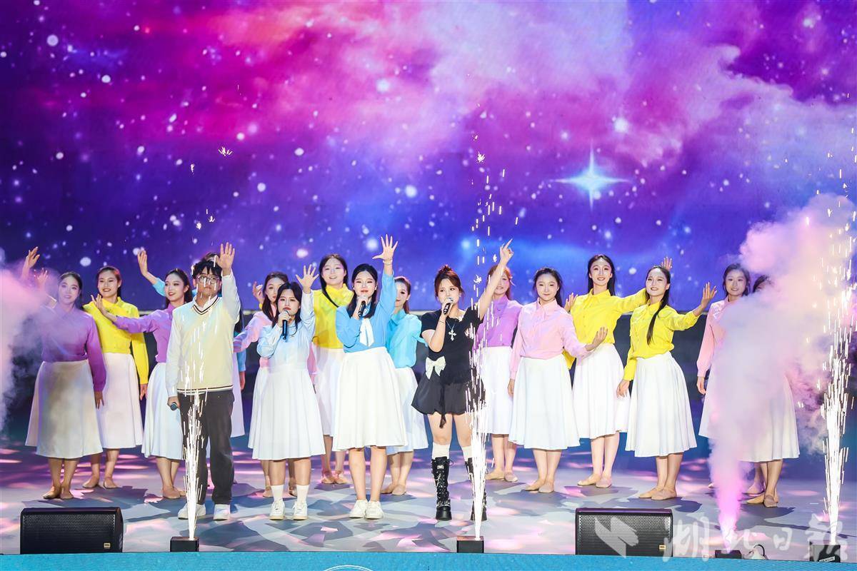 晚會尾聲,千余名師生合唱《追尋》與《歌唱祖國》。12名國旗護衛隊隊員高擎巨幅國旗,從學子們頭頂緩緩拂過,大家紛紛舉起雙手深情托舉國旗,為整場晚會刻下溫暖而有力的集體記憶。