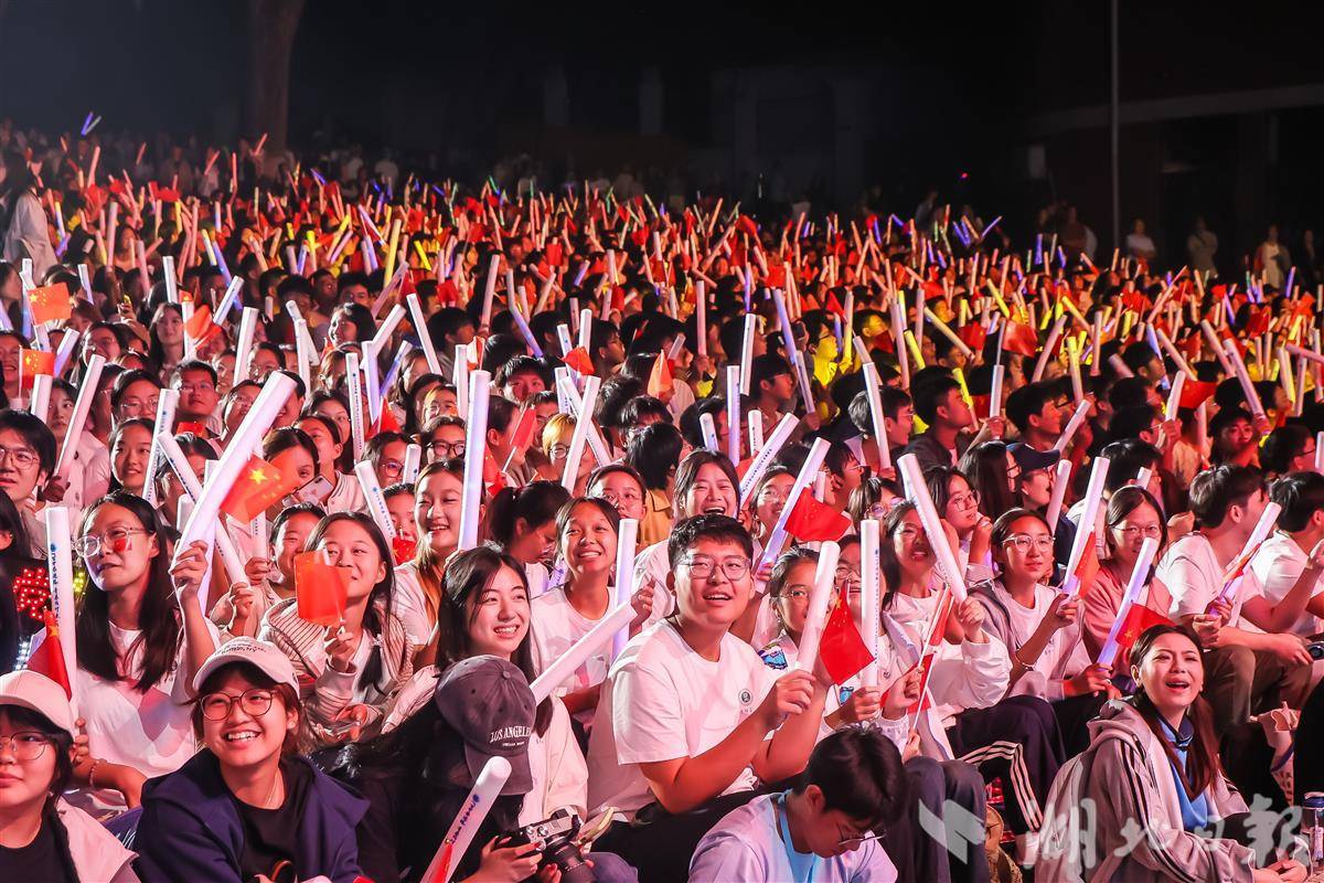 湖北日報訊(記者韓曉玲、通訊員黨波濤、盧俊霖、陳希昌)10月12日晚,華中師范大學2025年迎新晚會在該校露天電影場舉行。晚會深度融合校史資源與紅色文化,帶來多個原創作品,為新生們呈現了一堂沉浸式美育思政課。全場新生揮舞熒光棒,形成一片動人的熒光燈海。