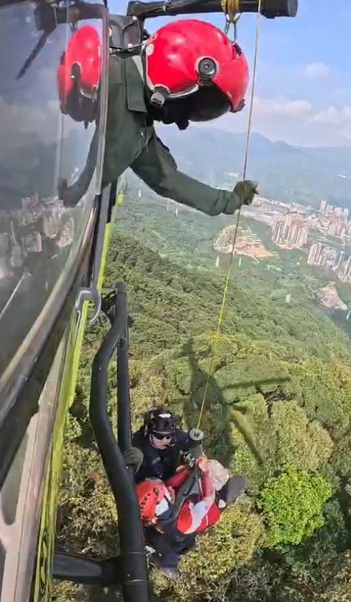 10月12日,網(wǎng)友發(fā)視頻“第一視角”跟隨直升機(jī)救援。直升機(jī)飛抵梧桐山救助一名爬山失足摔落的男子,因梧桐山山高林密,于是垂下吊索,垂直把患者“吊”上來(lái),通過(guò)直升機(jī)運(yùn)走,送往龍崗中心醫(yī)院。