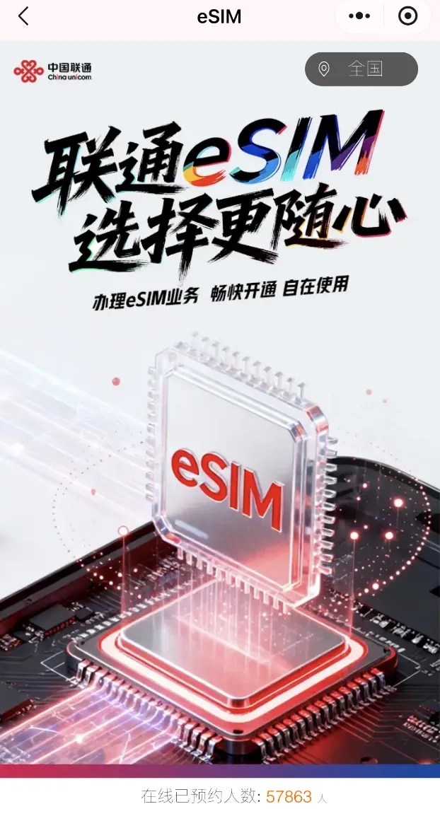 此前中國聯通也宣布eSIM預約通道正式開放。