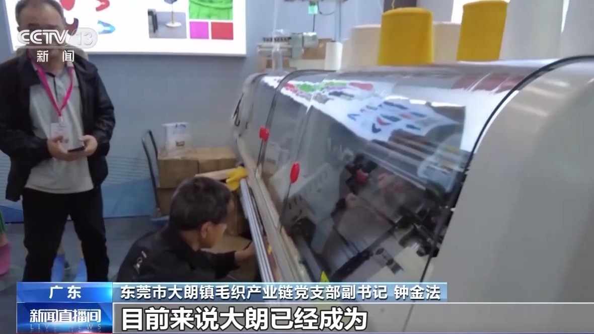東莞市大朗鎮毛織產業鏈黨支部副書記 鐘金法:目前來說大朗已經成為全世界使用電腦橫機最集中的一個地方。技術提升使得生產效率能夠提高大約20%到30%。