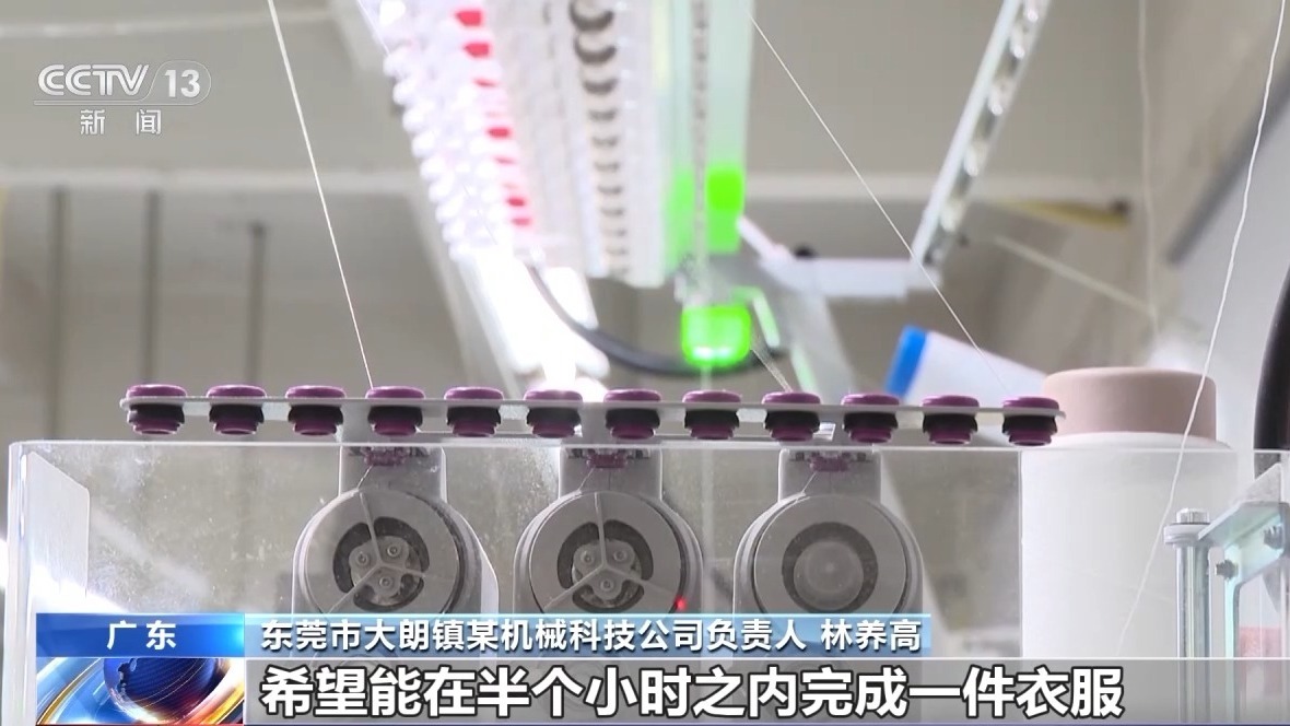 東莞市大朗鎮某機械科技公司負責人 林養高:我們生產一件衣服現在大概需要一個小時。未來慢慢往50分鐘、40分鐘去改進,希望能在半小時之內完成一件衣服。