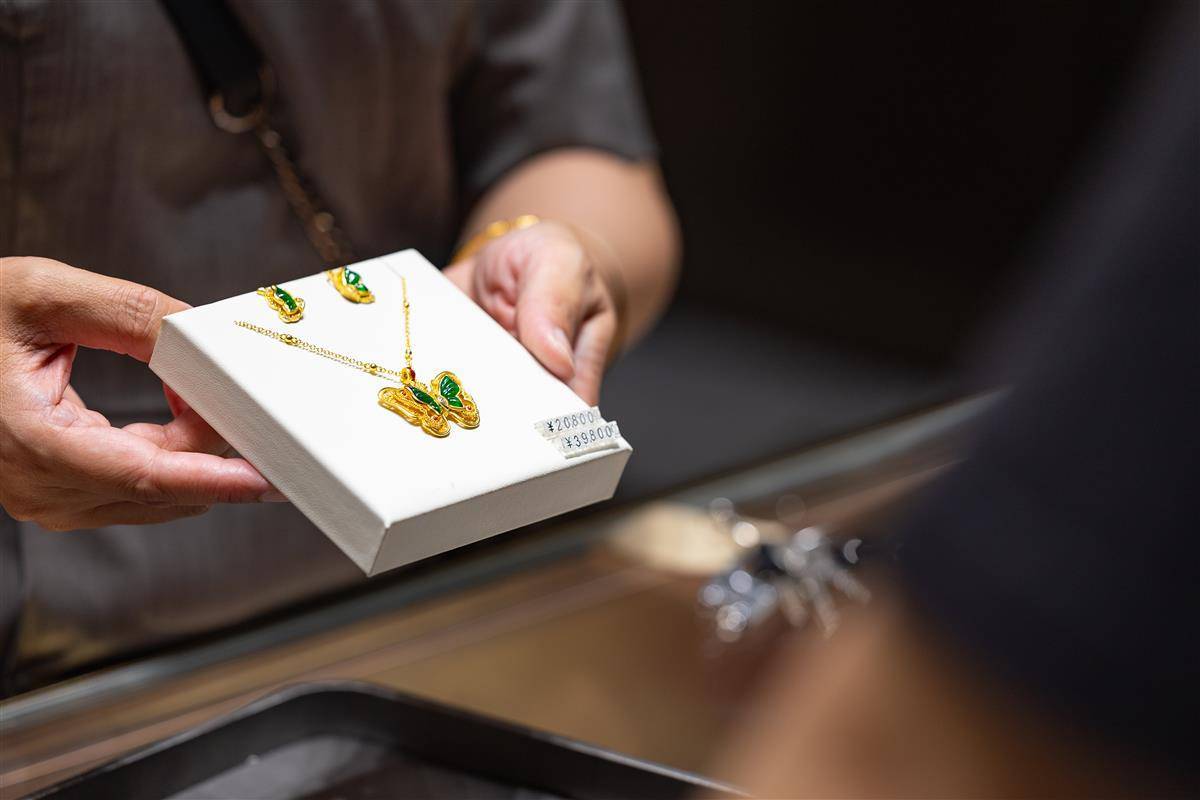顧客在武商MALL·世貿(mào)周大福店內(nèi)選購金飾。