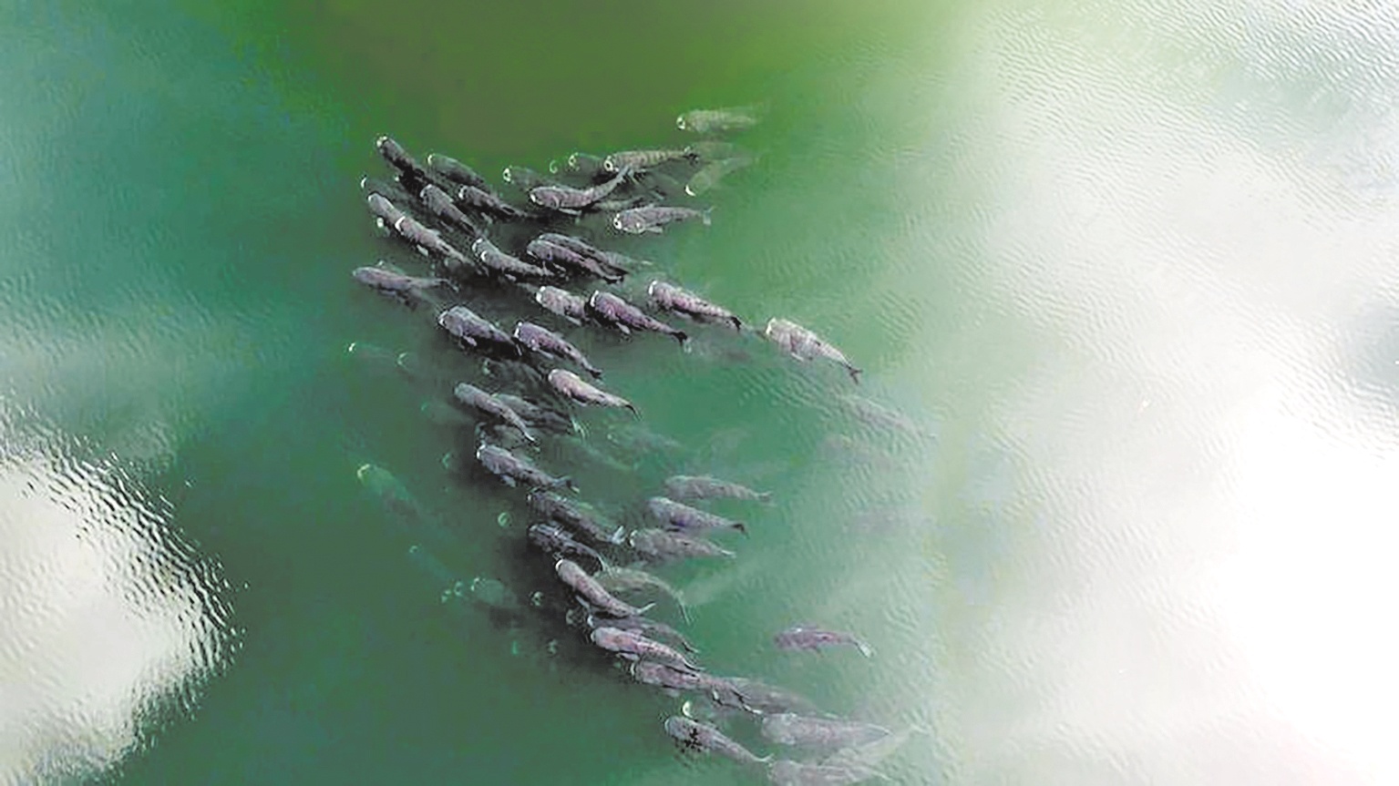 10月12日,在湖北省鶴峰縣走馬鎮江坪河,出現成群魚兒列隊穿梭的景象。它們時而排成“一”字,時而組成“人”字,在碧綠的水體中游動,形成一幅靈動的生態畫面。