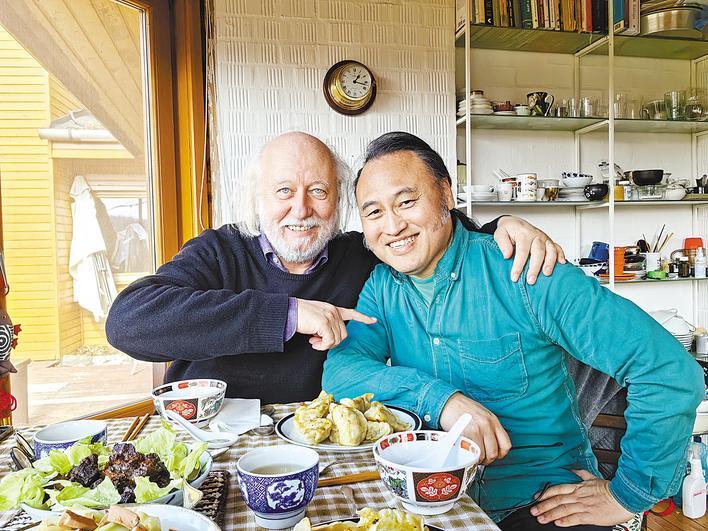 2024年,余澤民到拉斯洛家中給他做中餐,兩人開心地合影。(受訪者供圖)