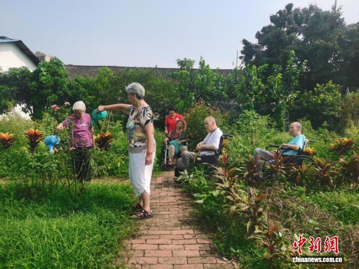 佛山一所養老社區環境優美,長者們在打理菜園。廣東省民政廳 供圖