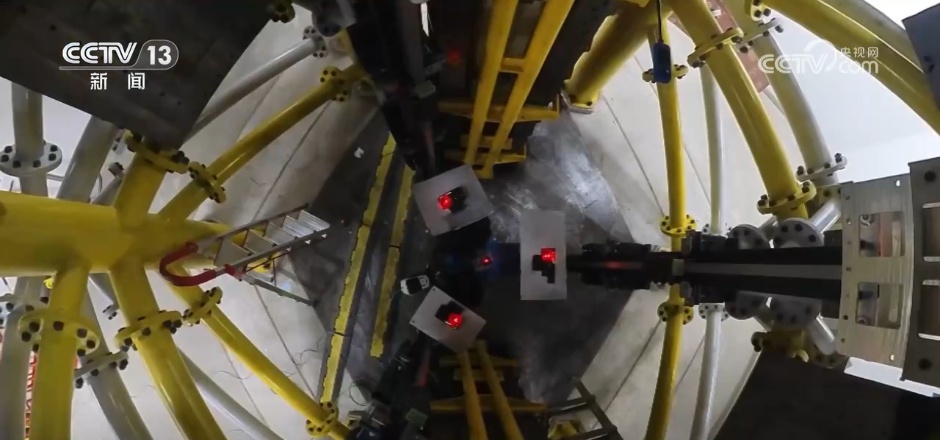 在這個(gè)電梯“轎廂”的位置就是可以上下移動(dòng)的實(shí)驗(yàn)艙,直徑1.2米,高2米,重500公斤,科研人員正在準(zhǔn)備新一輪微重力科學(xué)實(shí)驗(yàn)。