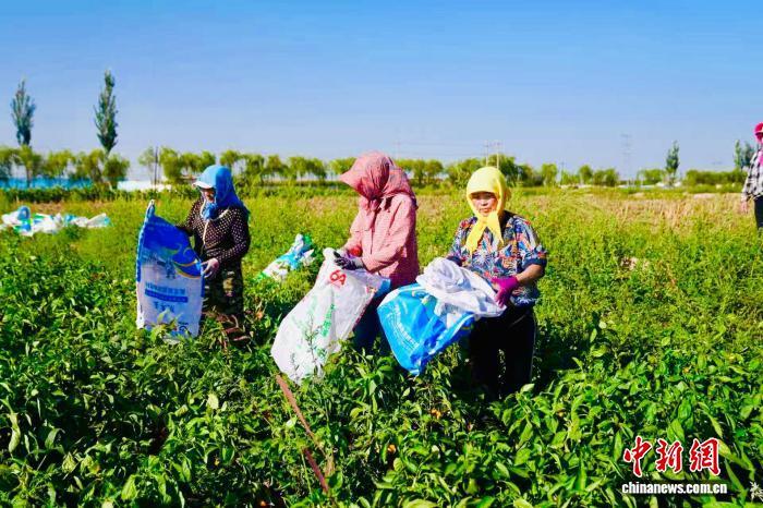 圖為杭錦后旗雙廟鎮辣椒采收現場。 杭錦后旗融媒體中心供圖