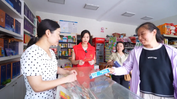 2025年6月25日,監(jiān)利市荒湖管理區(qū)文明實(shí)踐志愿者引導(dǎo)群眾在“美麗荒湖愛心積分兌換超市”兌換獎(jiǎng)品。李超 攝