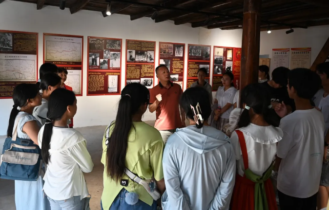 2025年7月14日,松滋市劉家場鎮(zhèn)宣講團(tuán)成員胡穎在紅四軍軍部、紅二軍團(tuán)部舊址為鎮(zhèn)初級中學(xué)學(xué)生宣講紅色故事。劉霖珂 攝
